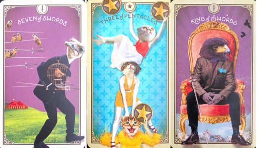 【ペンタクルの4】*逆と【ソードの女王】と【ソードの3】