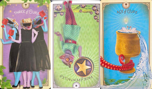 【カップの3】と【ペンタクルのペイジ】*逆と【カップの1】