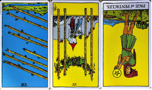 【ワンドの8】*逆と【ワンドの4】*逆と【ペンタクルのペイジ】*逆