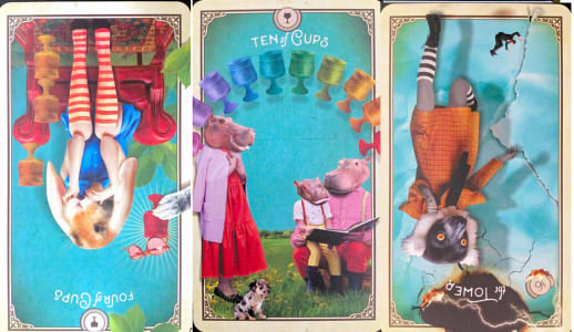 【カップの4】*逆と【カップの10】と【タワー】*逆