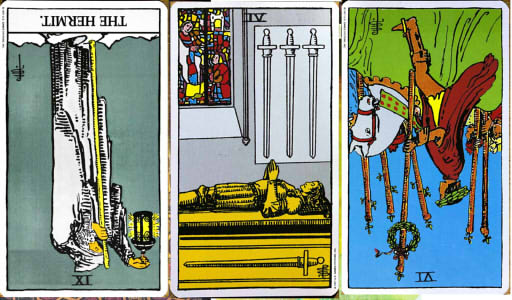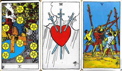 【ペンタクルの10】*逆と【ソードの3】と【ワンドの5】