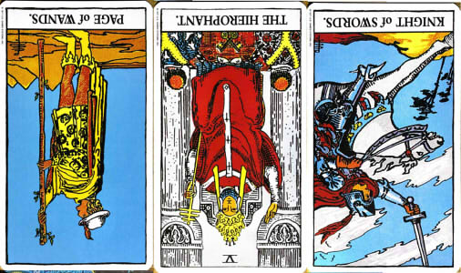 【ワンドのペイジ】*逆と【法王】*逆と【ソードのナイト】*逆