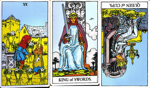 【カップの6】と【ソードのキング】と【カップの女王】*逆