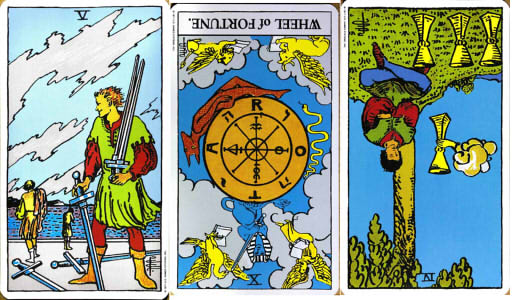 【ソードの5】と【運命の輪】*逆と【カップの4】*逆