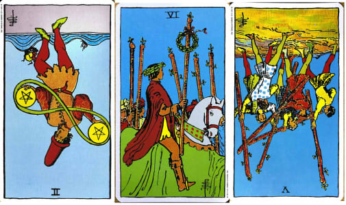 【ペンタクルの2】*逆と【ワンドの6】と【ワンドの5】*逆