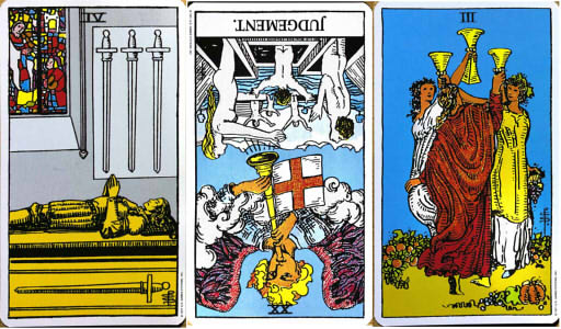 【ソードの6】と【カップのペイジ】と【ソードの2】