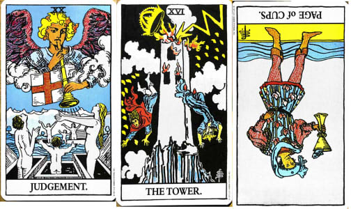 【ジャッジメント】と【タワー】と【カップのペイジ】*逆