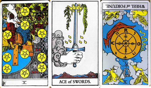 【ペンタクルの10】*逆と【ソードの1】と【運命の輪】*逆