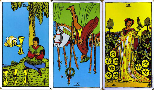 【カップの4】と【ワンドの6】*逆と【ペンタクルの9】